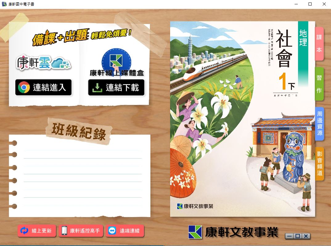111學年下學期 國中 康軒版 地理電子書 1年級(含課本、習作含解答、教學資源)教學光碟
